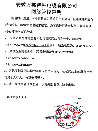 鄭重聲明:安徽萬邦特種電纜有限公司官方網站為:www_wanbangcable_com.44svp6s.cn,除此之外無任何子網站或合作網站,其余均為假冒偽劣。電話:0550-7621728 13485756353 地 址:安徽省天長市滁州高新技術產業開發區經四路29號